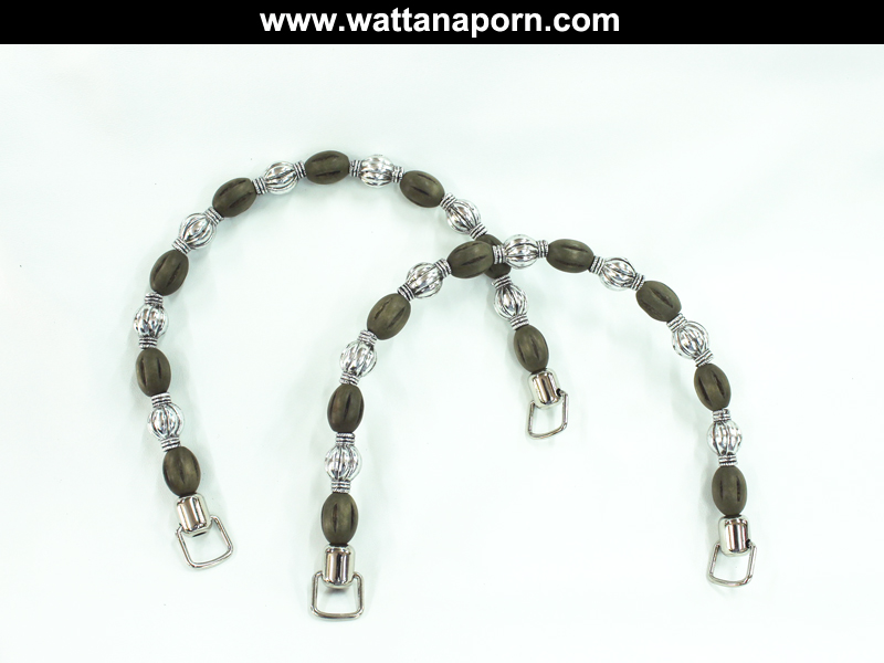 หูหิ้วกระเป๋าลูกปัด ใช้ลวดแข็งเป็นแกนในทำให้เป็นทรง มีความกว้างประมาณ 15 ซม